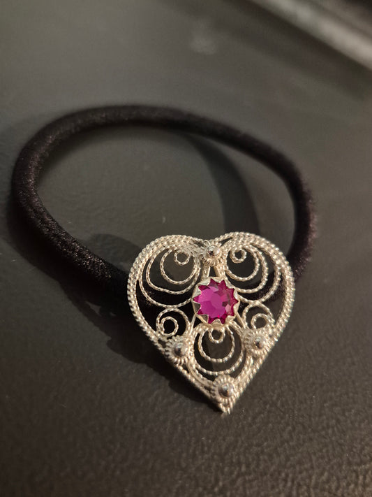 Hjerte bunad hårstrikk m/swarovski