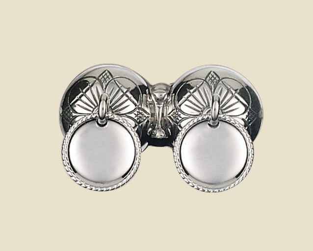 • Barnesølv til gutt. Halsknapp i oksidert sølv med firkløverdekor og trådkantløv. En flott og kjær gave til en liten gutt i bunad.