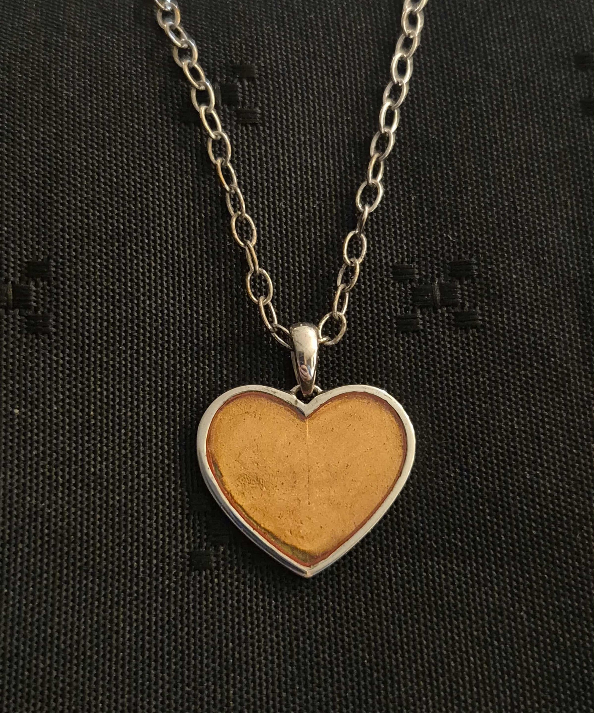 Oransje emalje sølvhjerte anheng m/ 44cm oksidert kjede